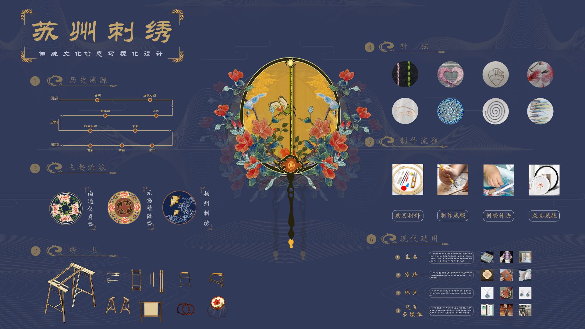 苏州刺绣蓝色46页古典传统非遗博物高保真含交互web网页