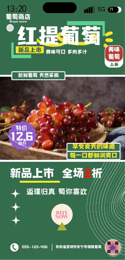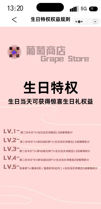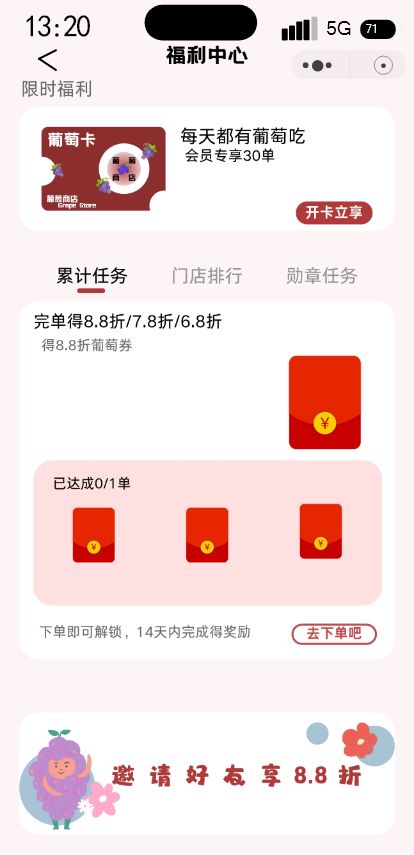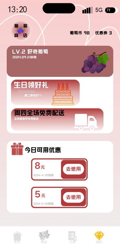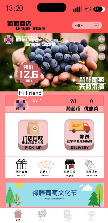 葡萄小程序商城优惠券会员设计开发39页绿色高保真含交互