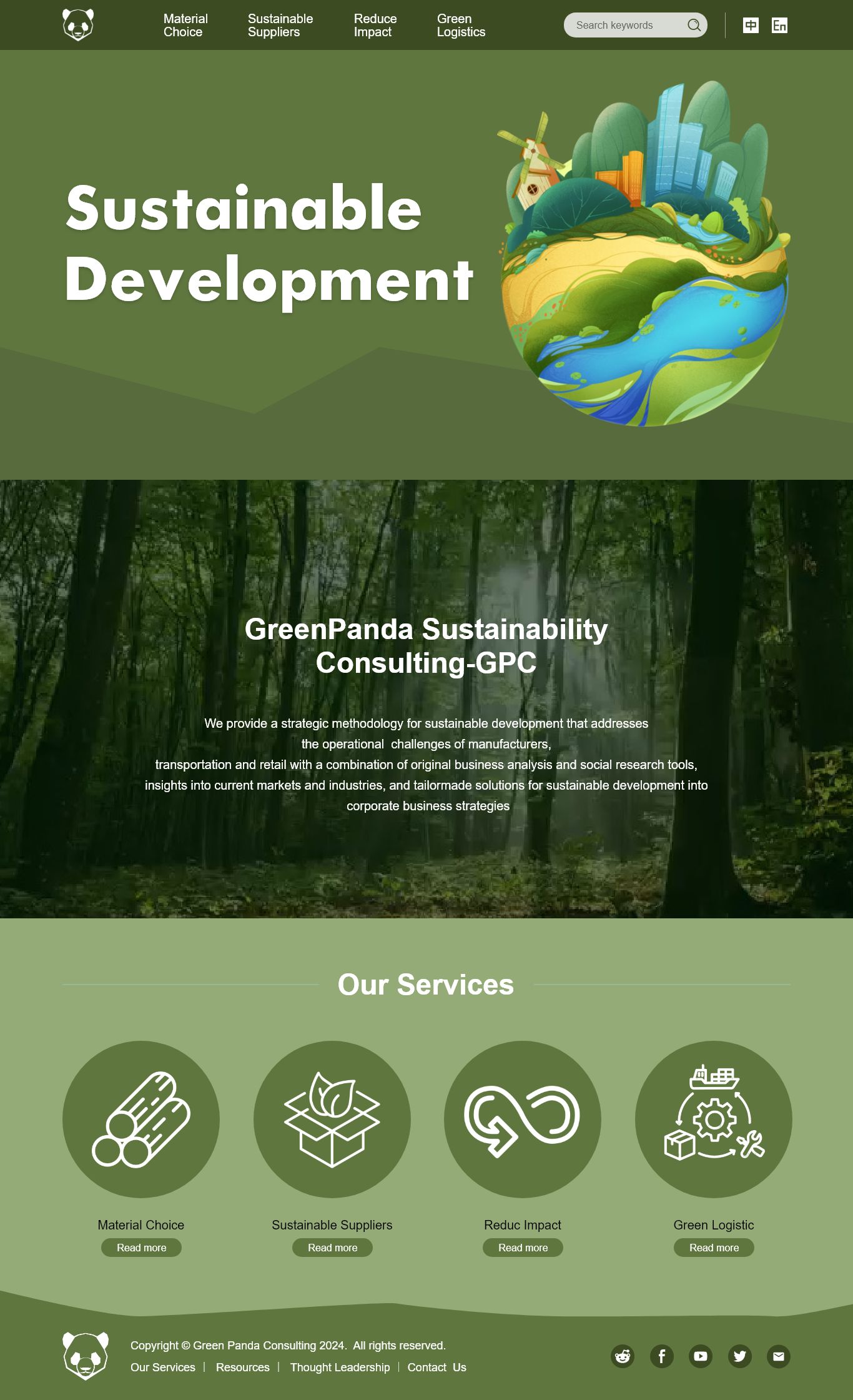 英文熊猫环保绿植地球生态保护网页5页高保真含交互