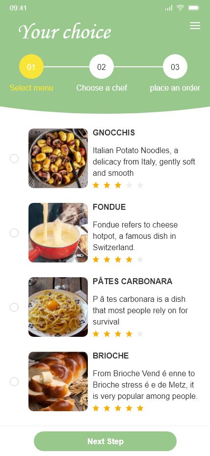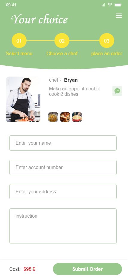 厨师上门private chefs点餐做饭美食英文17页高保真含交互