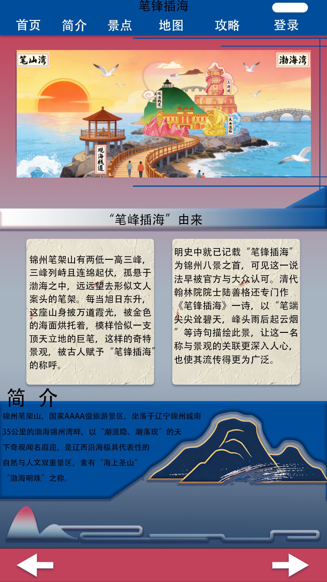 笔锋插海旅游红色山峰地图11页高保真含交互