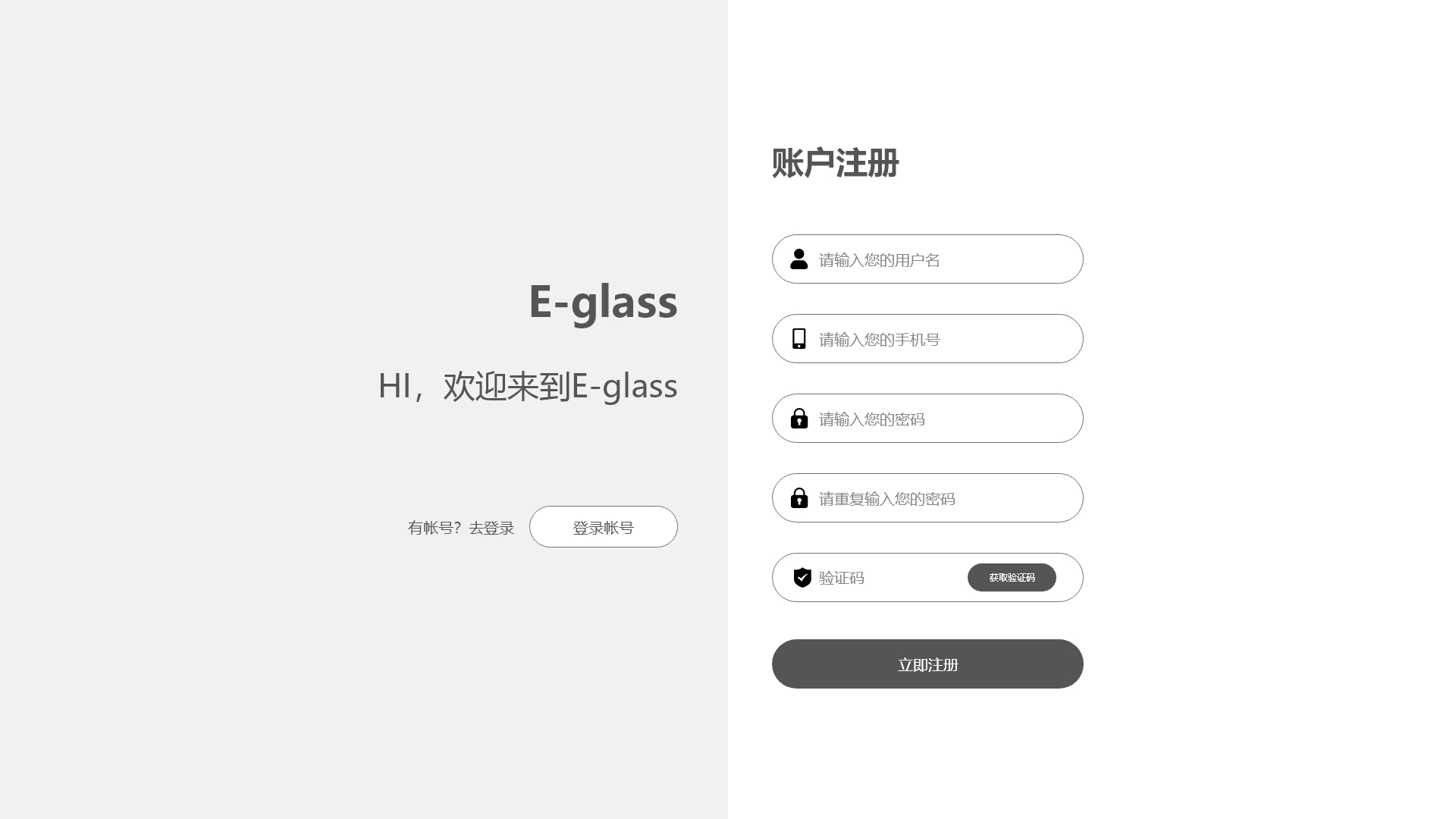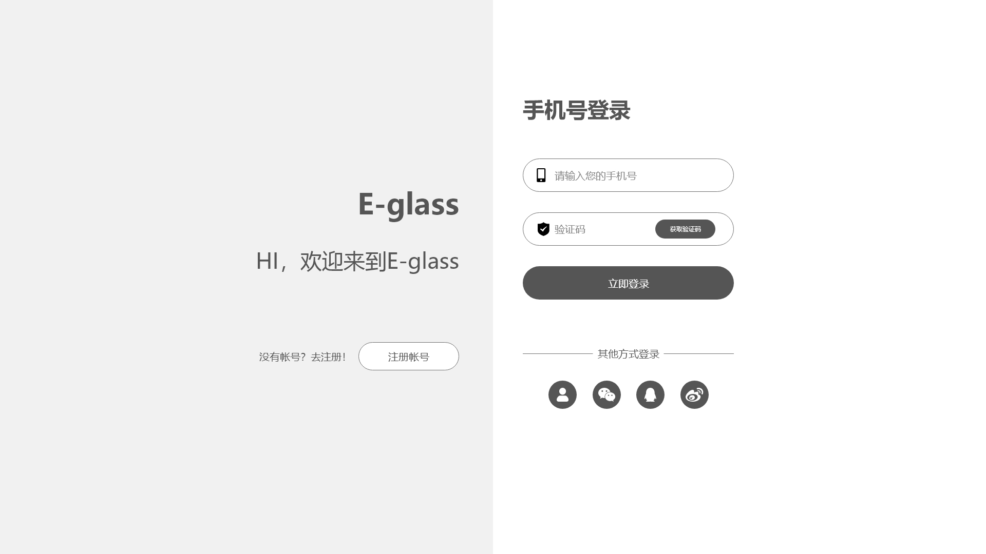 低保真glasses登录注册3页线框图含交互