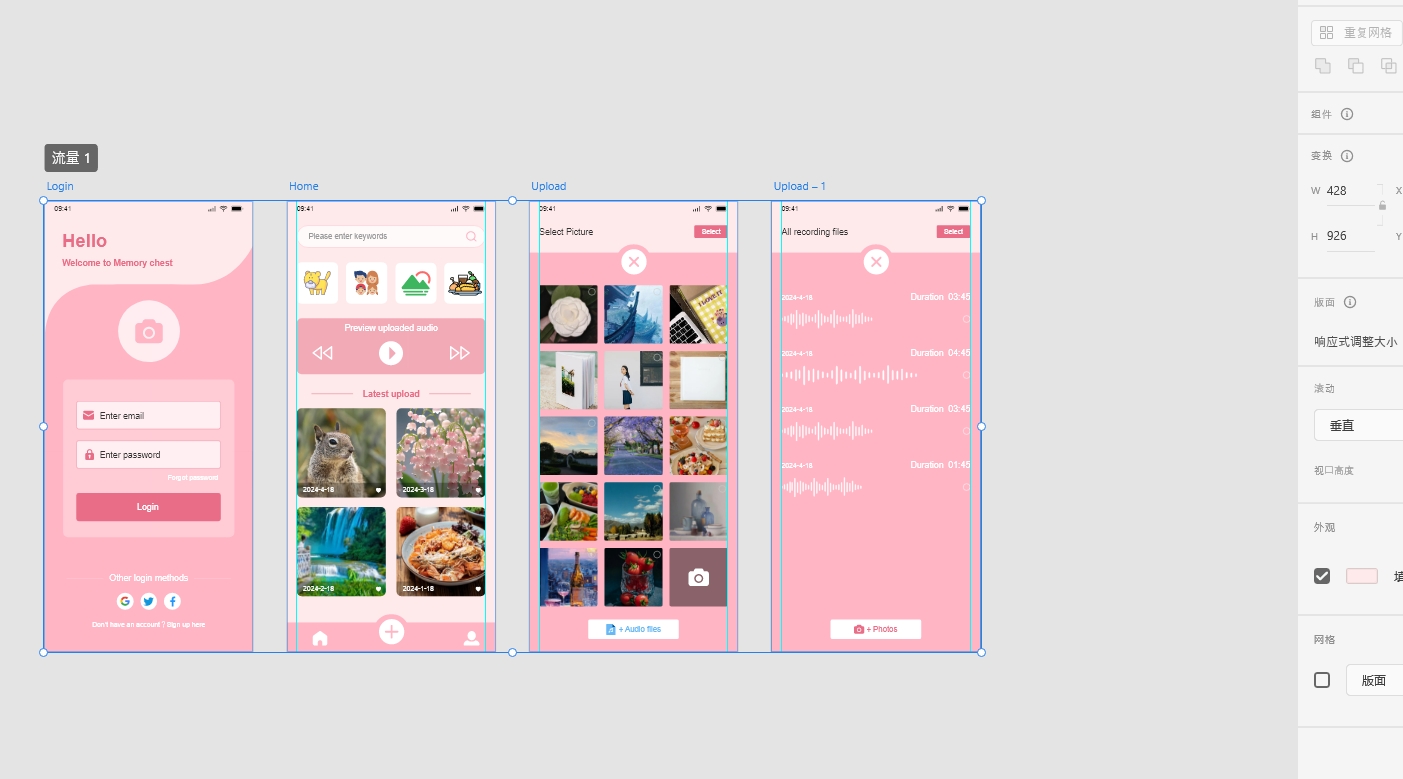 英文识别上传视频音频APP设计4页高保真含交互