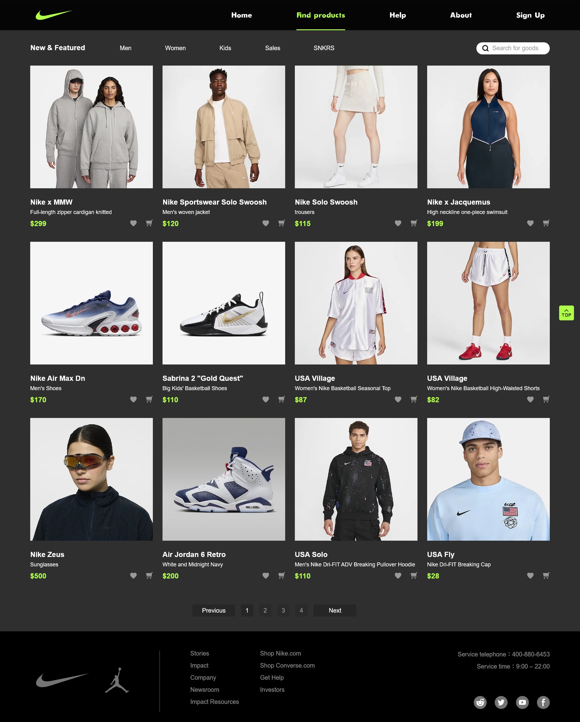 耐克Nike高保真含交互PC和移动一套网页6页xd