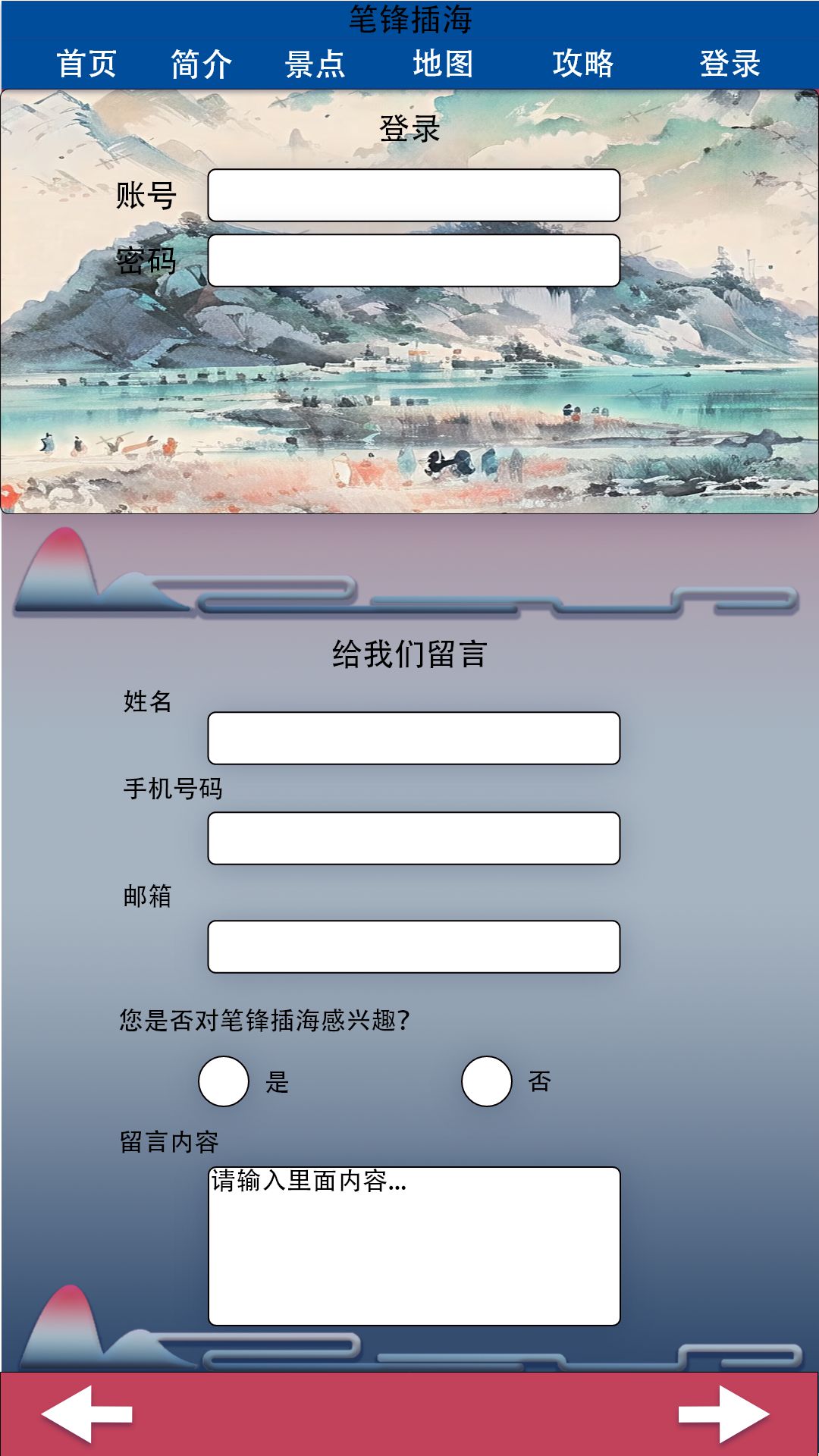 笔锋插海旅游红色山峰地图11页高保真含交互